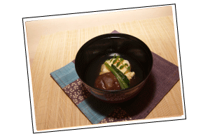 温めたお椀に材料を盛り、吸地をかけて完成です。