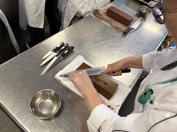 これらのポイントを押さえて、学生達が安全かつ効果的に包丁を研ぐことができるようサポートします。