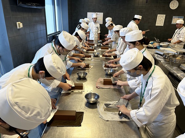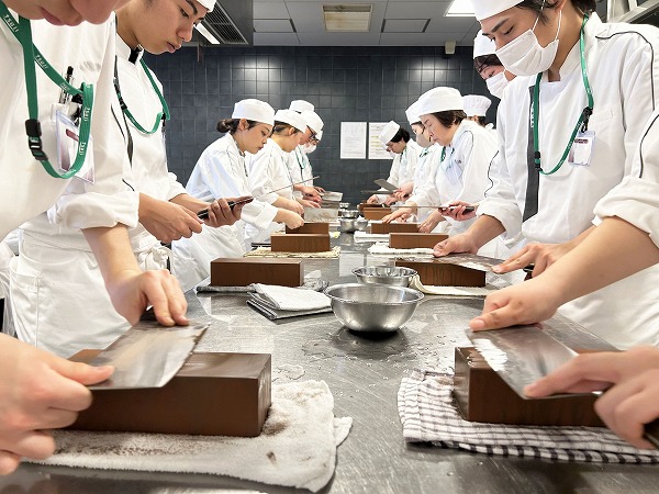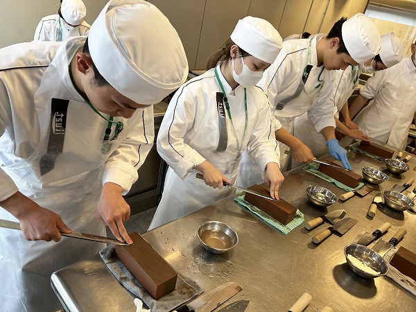 学生達が様々な包丁を研ぐ実習に取り組んでいるのは素晴らしいですね!