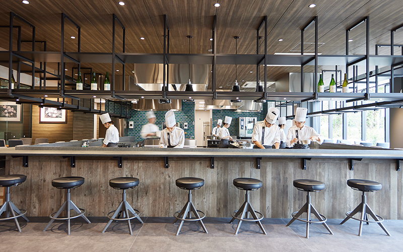 しっかりとした衛生管理のもと、オープンキッチンでお客様の目前で料理を仕上げるライブ感を提供し、ホスピタリティ精神を大切にしたサービスを心掛け、おもてなしをさせていただきます。