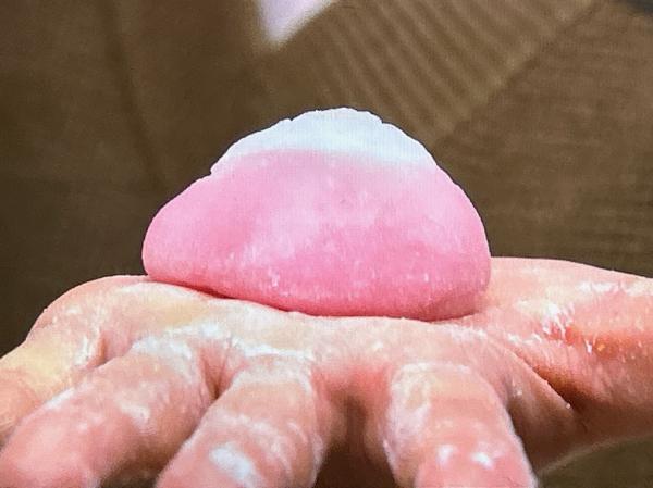 まずは赤い餅生地を使って「赤富士」を作ります。