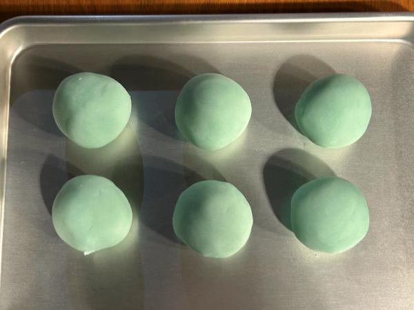 ずは白あんに青い色素を混ぜて丸めておきます。