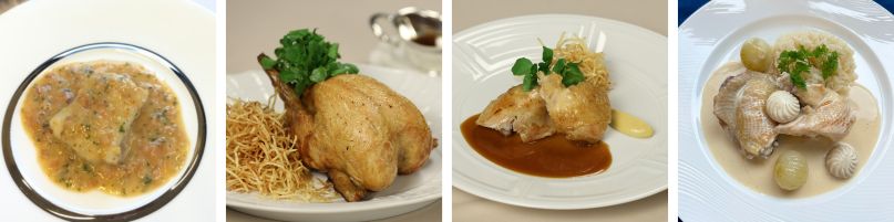 鶏の4つ落とし(1人1羽)鶏胸肉のポシェ、ソース・ラヴィゴット
