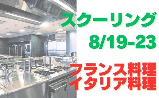 2019年8月スクーリング概要(フランス料理・イタリア料理)