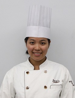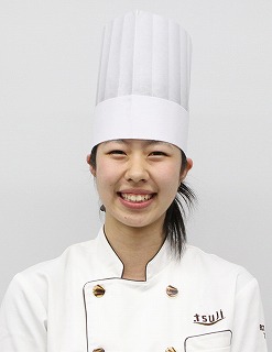 私が応募するにあたって、念頭においていたのは、これはファミリーマートと学校とのコラボなので、私たちがこれまで学んできたベーシックなお菓子をコンビニスイーツで実現できたらいいなということでした。果物は、やはり大量生産が可能なリンゴや栗を考えました。そして、自分が食べたいと思うものを作ることです。今、コンビニのお客様の層が若い人だけなく、年配の方などにも広がっていることも聞いていたので、幅広い層にどちらかというと社会人の人にも食べていただけるようなものにしたいと思いました。今回受けたマーティングの講義の中で、ファミリーマートでは1週間にすごい数のアイデアがだされ、その中から選ばれた1つか2つの商品が、数カ月後には販売されるという話を聞き、大企業の生産力のすごさをあらためて感じました。また、ミーティングで、私たちのメンバーの味に関する指摘のポイントがあまりブレることがなく、共通の認識でとらえることができたのは、やはり同じものを学んできた仲間なのだなと思いました。今回、特にマーケティングの要素として視覚の重要性を学んだので、就職して仕事をする際にも、その感覚は生かしていきたいと思います。