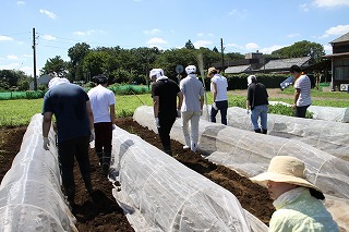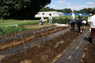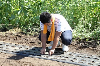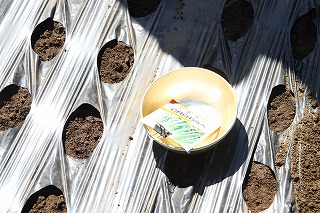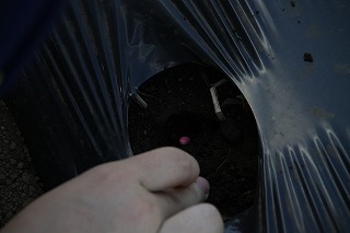 事前に、畑には種まき用のビニールを貼ってくださっていたので、
