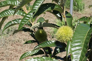 小さな栗の木にはすでに、青い毬栗ができていたり、