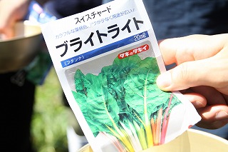 この日は、いんげん、ほうれんそう、小松菜、小蕪、蕪、ブライトライトの6種類の野菜の種を植えました。