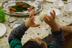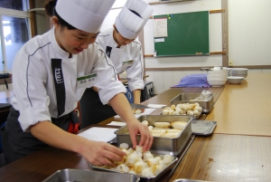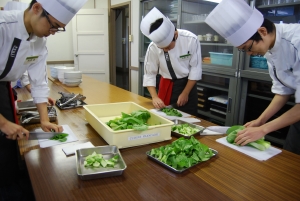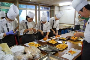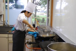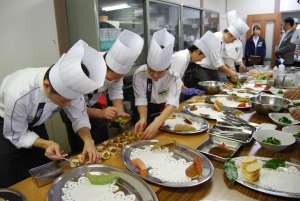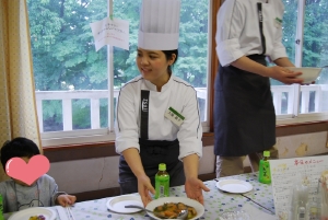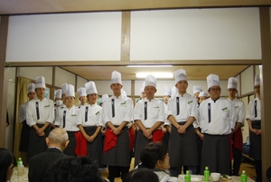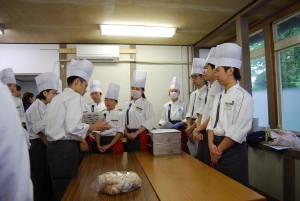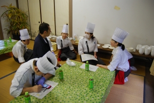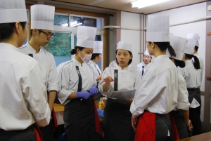 上級生から下級生へ料理説明の際のアドバイスなども行われ、いよいよ料理の提供です。
