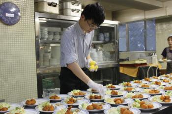 ホテルに配属された学生は、200人分の調理が毎日あり、最初はとまどいながらも徐々に慣れてきた様子でした。