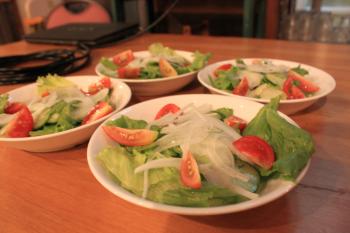自分たちで地元の道の駅に食材の買い出しに行き、食材からメニューを考えた結果、「夏野菜カレー」と「サラダ」を作りました。