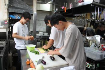 ホテルに配属された学生は、200人分の調理が毎日あり、最初はとまどいながらも徐々に慣れてきた様子でした。