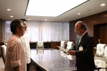 学校を代表して、山崎正也先生と大川満先生が国立市長を訪問し、