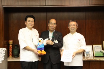 今年、10月3日から開催される国体のマスコット「ゆりーと」のぬいぐるみが手渡されました。