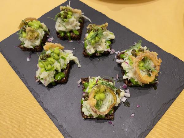 ●完全にイメージを覆す料理ばかりだった。一番印象に残ったのは、海産物や海苔の風味でマリネしたサバ。じっくり味わうと海辺に行ったとき最初に感じる香りだった。メキシコ、北欧、日本の料理が融合していて、本当に衝撃的だった