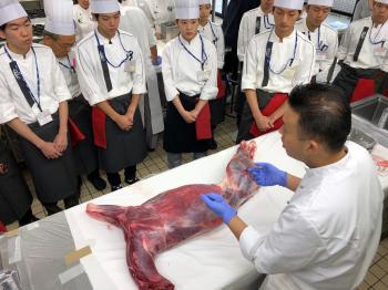 9月20日は、エコール 辻 東京で「オーベルジュ・エスポワール」の藤木徳彦シェフを講師にお招きし、ジビエについての講義と鹿肉の解体実習を実施。