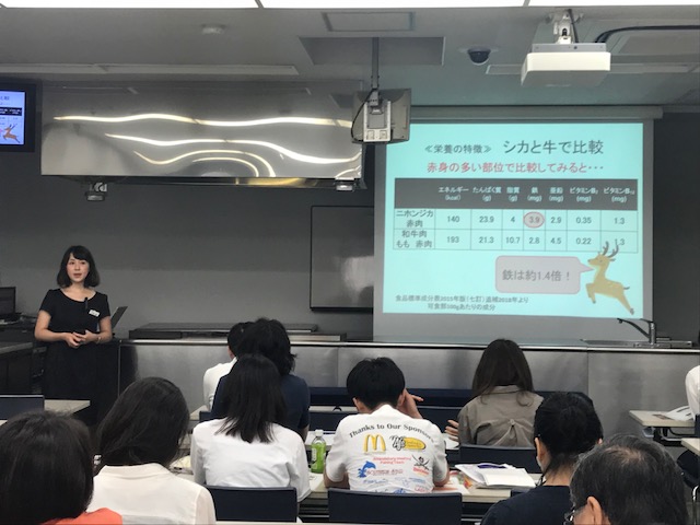 その後、エコール 辻 東京 迫井千晶先生が「HACCP義務化に対応したジビエの衛生管理」、続いてこちらも今回新たに追加された、全国食肉学校の小原和仁先生による「ジビエの食肉の科学」についての講義が行われました。![]()