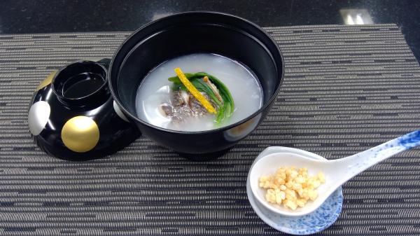 テーマや自分たちの思いを具現化するために、献立の書き方と料理の盛り付けを結び付けて、更に完成度は高くなっていました。椀物は、料理として、前回に比べて塩味も濃度も程よく、椀種である真鯛の食べやすさや、鶯菜の緑や柚子の黄で彩り添えるなど、盛り付けも工夫されていました。しかし、『日本のお米』というシンプルすぎるテーマ名では、この椀物の世界観がしっかり伝わらないという理由で、テーマを表現する言葉は本番までに見直しとなりました!