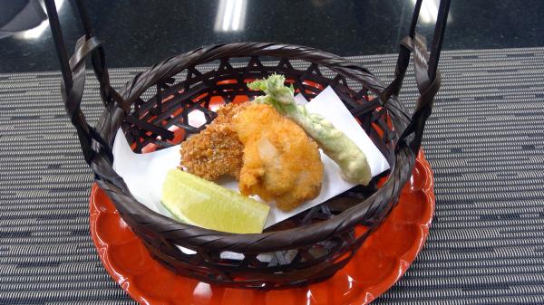 木の芽を載せ忘れたり、空豆のピュレを入れ違ったり、改善すべき点はあるものの、揚げ具合はバッチリの三種の揚げ物です。