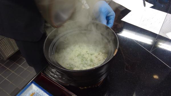 食事は、釜の蓋を開けた瞬間のスモークの香りや量から、具材の大きさ、味付けまで、前回から改善されていました。ご馳走のコース料理の〆として十分のインパクトがあります。しかし、『自然の豊かさ』というテーマ名だけでは、学生たちが表現したいストーリーを伝えきれていないということで、これを伝えきれる改善が課題として残りました。