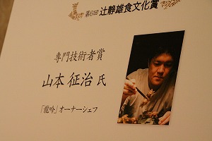 そして、日本料理「龍吟」のオーナーシェフ山本征治氏に辻静雄食文化賞 専門技術者賞が贈られました。