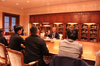 12月11日の放課後に毎年恒例となった辻芳樹校長と辻調理師専門学校・辻製菓専門学校に在籍している留学生8名との茶話会がありました。