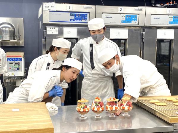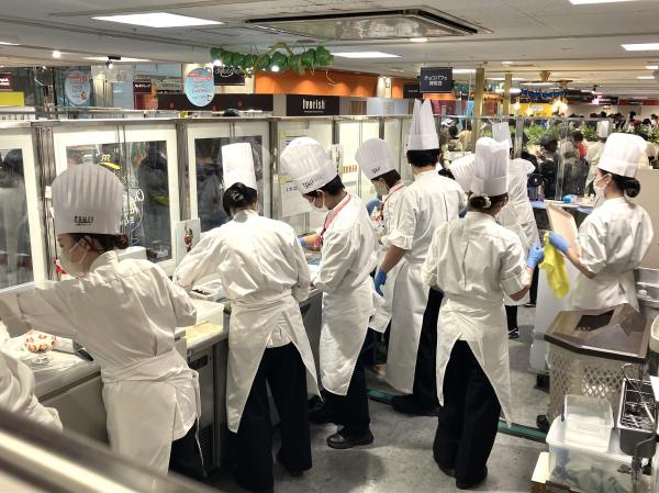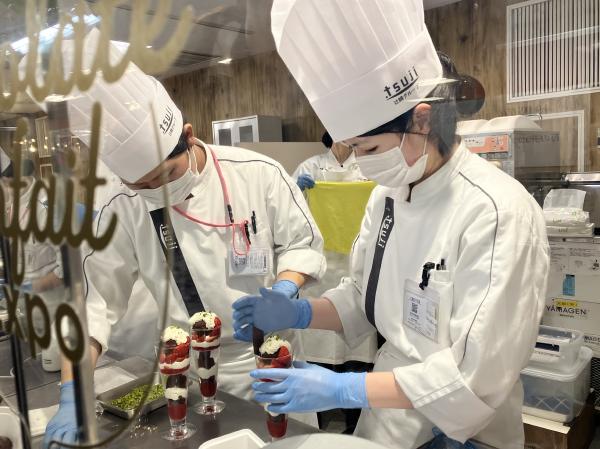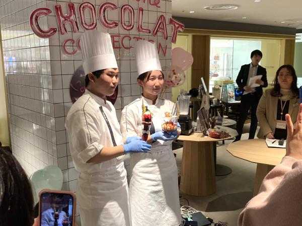 1月25日(土)、26日(日)の2日間、あべのハルカス近鉄本店で開催されている「バレンタイン ショコラ コレクション2025」の「チョコパフェ博覧会」に辻調理師専門学校が出店し、学生が考案したオリジナルパフェを販売しました。