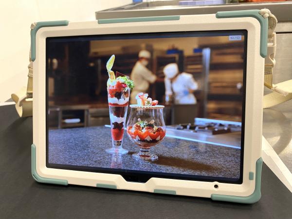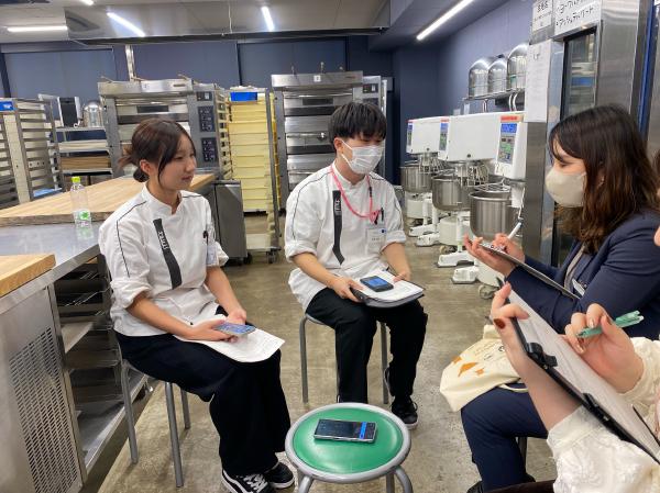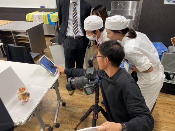 完成後は、商品カタログの撮影やインタビューにも対応し、自分たちがパフェに込めた想いをしっかり語っていました。プロのカメラマンに自分たちのパフェを撮影していただくという貴重な体験もさせていただき、仕上がった画像を見た学生たちはとても喜んでいました。
