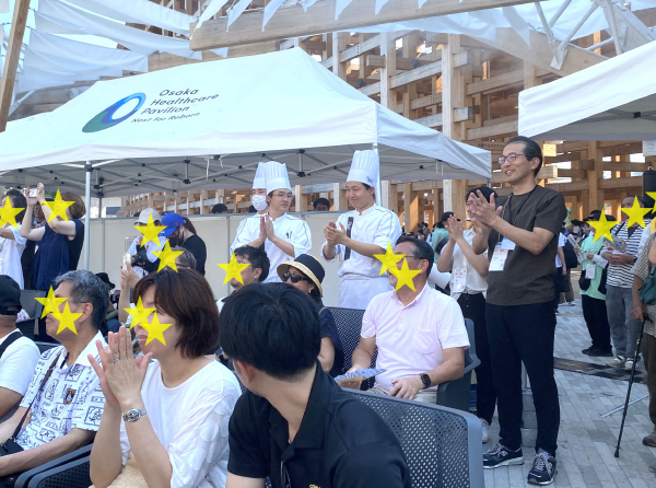 当日は大阪ヘルスケアパビリオン内のデモキッチンでも辻調理師専門学校の学生がイベントを行っており、デモキッチンに出演している学生たちも、イベントの合間に応援に駆けつけてくれました。