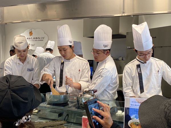 「ミライの食と文化ゾーン」デモキッチンで開催されたイベントに辻調理師専門学校の学生が参加しました。