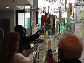お食事の後、皆さんは七夕の短冊に願いを書き、笹に飾りました。