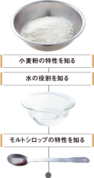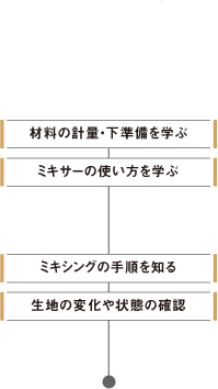 弾力のある生地へとこねあげる。 - 小麦粉などの材料をこねあげる生地づくり(ミキシング)は、製パンの中でも特に重要な、パンのできあがりを左右する工程です。ただこねるだけでなく、基本の考え方を理解して、つねに生地の状態を把握しておくこと。いわば愛情をもって見守ることで、最適な生地がつくりだせます。