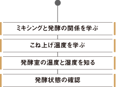 生地を育ててふくらませる。 - 小麦粉に水と酵母、少量の塩を加えることで、ふっくらとふくらんだパンが焼きあがる。それは、まさに人類にとって大きな発明でした。生地が発酵する温度や時間、パンチと呼ばれるガス抜きのタイミングなどを学ぶことで、最適な生地を育てる技が身につきます。