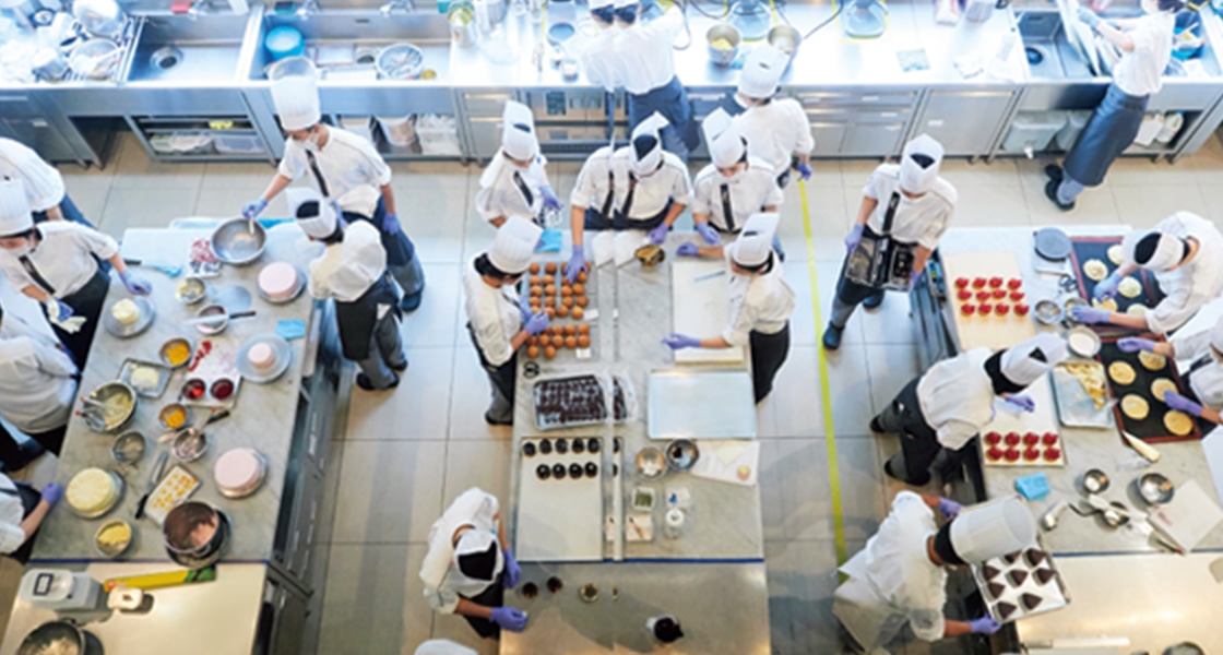 料理・お菓子のジャンルごとに設計された専用の実習室とプロ仕様の設備を完備。