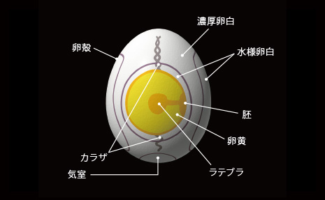 卵白を構成するタンパク質には、自己消化と細菌増殖を防ぐための特殊な作用があります。そのため、鶏卵は動物食品の中で生のままで最も保存性が高い食品だといわれています。