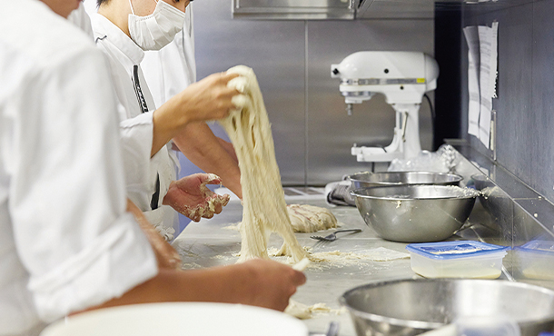 冷めたりお待たせしたりしないよう、サービス担当からのオーダーの様子にも気を配るなど、仲間と連携して調理を進めます。