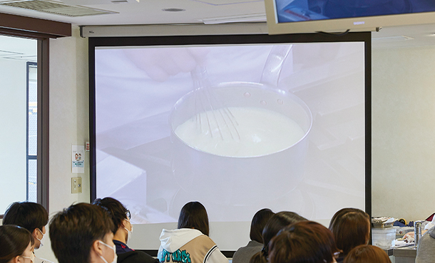 実習では⾃分たちの⼿でムースづくりに挑戦!
