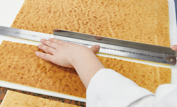 ⽣地の⼟台を敷いた型にムースを流し込む!