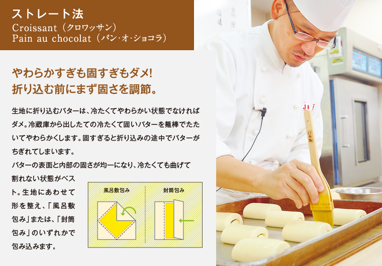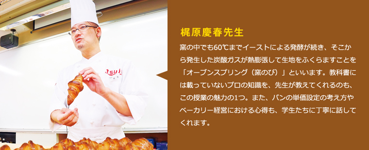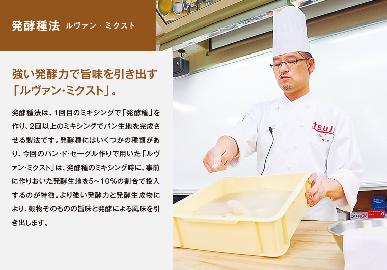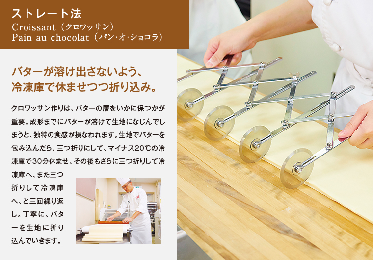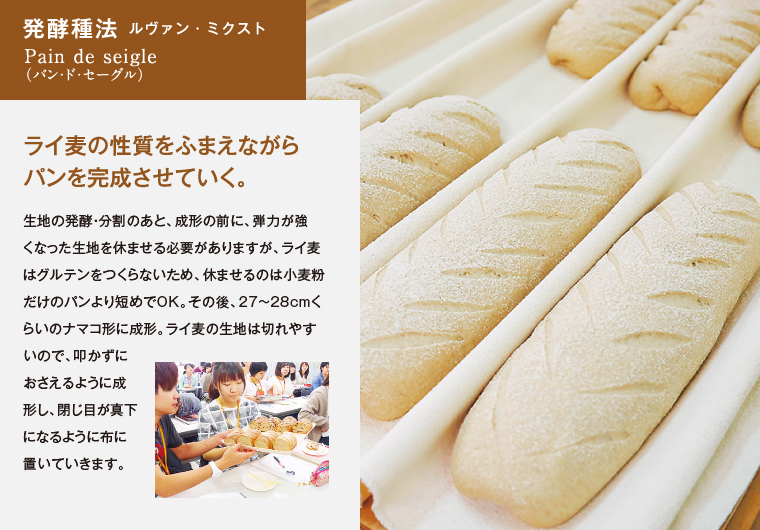 サクサクとふんわり、ふたつの食感が同時に味わえるクロワッサン。ライ麦の風味を活かした、ハードで食べごたえのあるパン・ド・セーグル。タイプの違う二種類のパンが、今回の授業のテーマ。先生の実演を通じて、学生たちはそれぞれのパンが持つ魅力的な個性をどのように引き出していくのかを、しっかりと学びます。