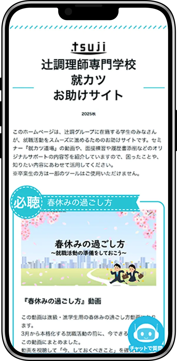 辻調理師専門学校が提供する、独自の就職活動ポータルサイトです。