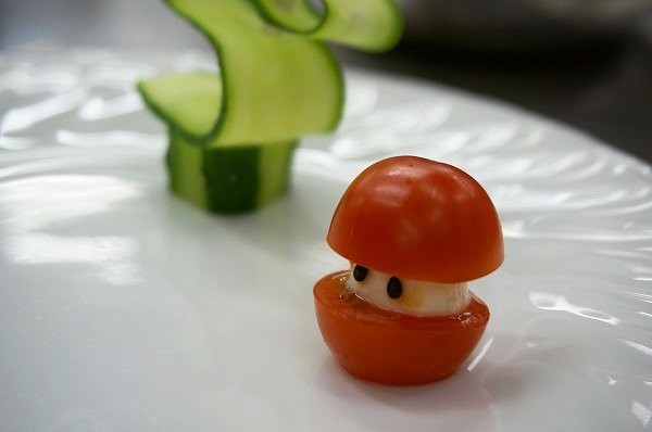 とくに前菜は、きゅうりをツリーに見立てた一品やトマトのサンタなど、