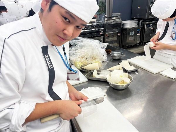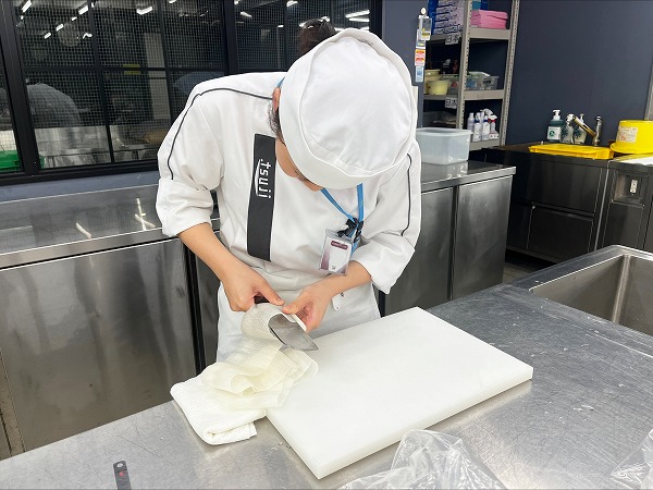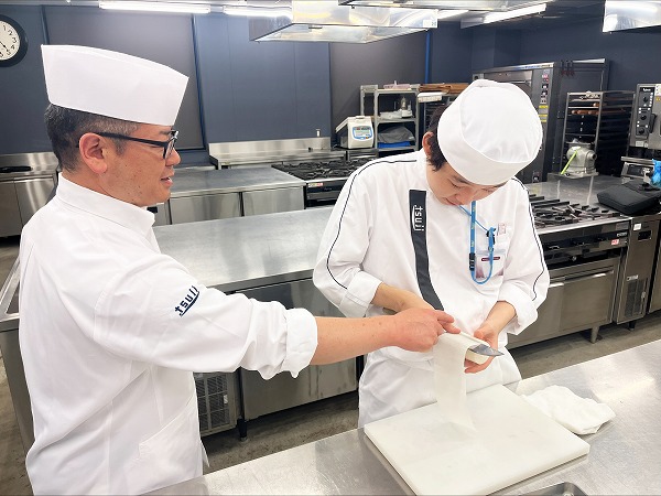 日本料理担当の鈴木先生にコツを聞くとすぐにご指導いただけました!