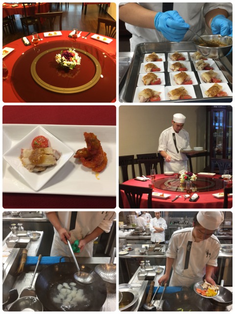 写真中段左)エビの香り揚げとゆで鶏のゴマソース(棒棒鶏)