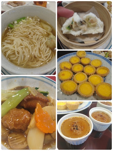 写真左上)ワンタンメン 写真右上)鶏肉のまんじゅう