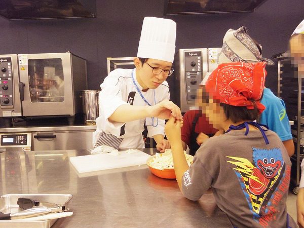 学生たちは、子どもたちが安全に楽しく調理できるよう、声かけや手順の工夫を凝らしました。