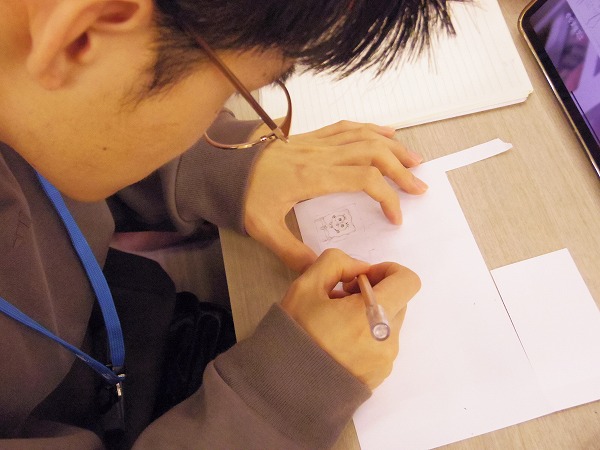 絵が得意な学生は、スラスラとペンを走らせていました。
