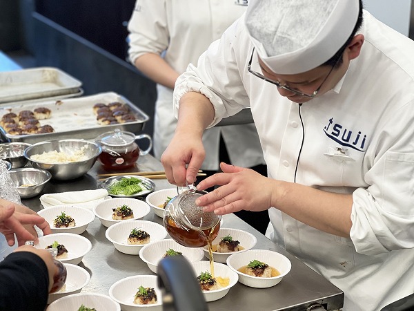 そこで選ばれたメニューは、学内コンクールで選ばれた「まるでたこ焼き!大阪ビーガンお茶漬け」です。