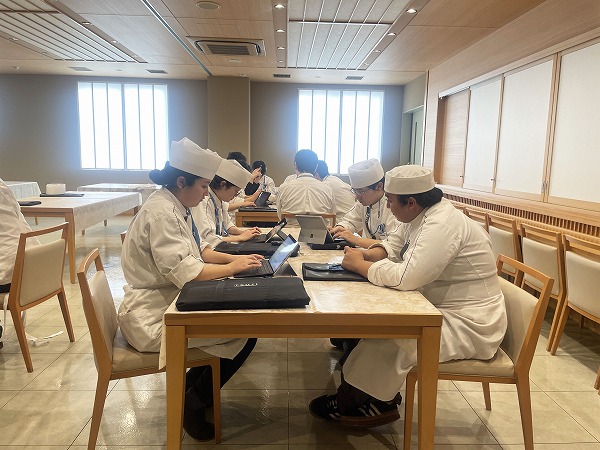 日本料理は2つの班で実習を行っており、それぞれの班で献立を考案します!