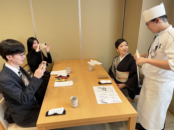 それぞれの実習班で献立を考え、保護者の方へ会席料理を提供します。