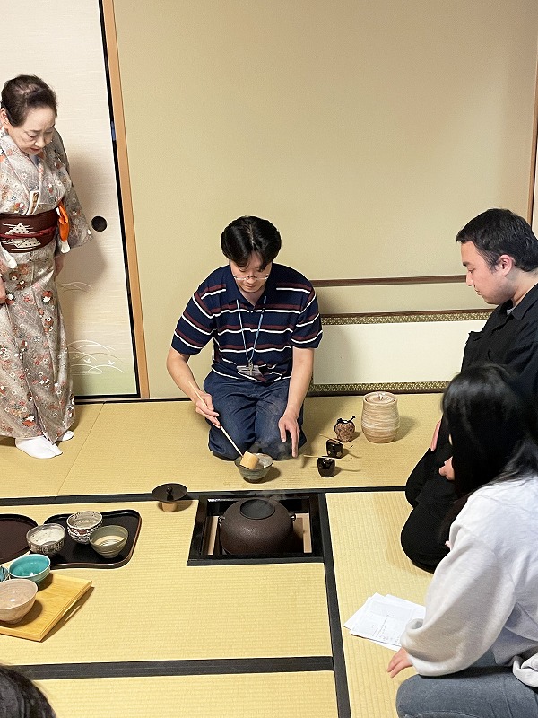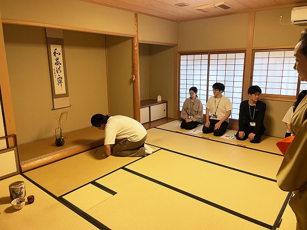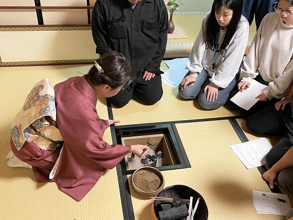 お席入りや掛け軸の拝見、お炭手前まで学びます。みんな興味津々